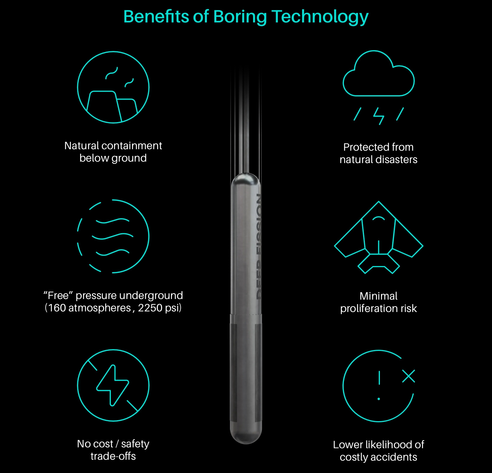 Klasik nükleer santrallerde en yüksek maliyet kalemi olan güvenlik altyapısı artık yüzeyde inşa edilmediğinden, yüzey inşaat giderlerinin %80 oranında azalması bekleniyor. Deep Fission’a göre üretim maliyeti kWh başına 5–7 dolar cent seviyesine düşecek.